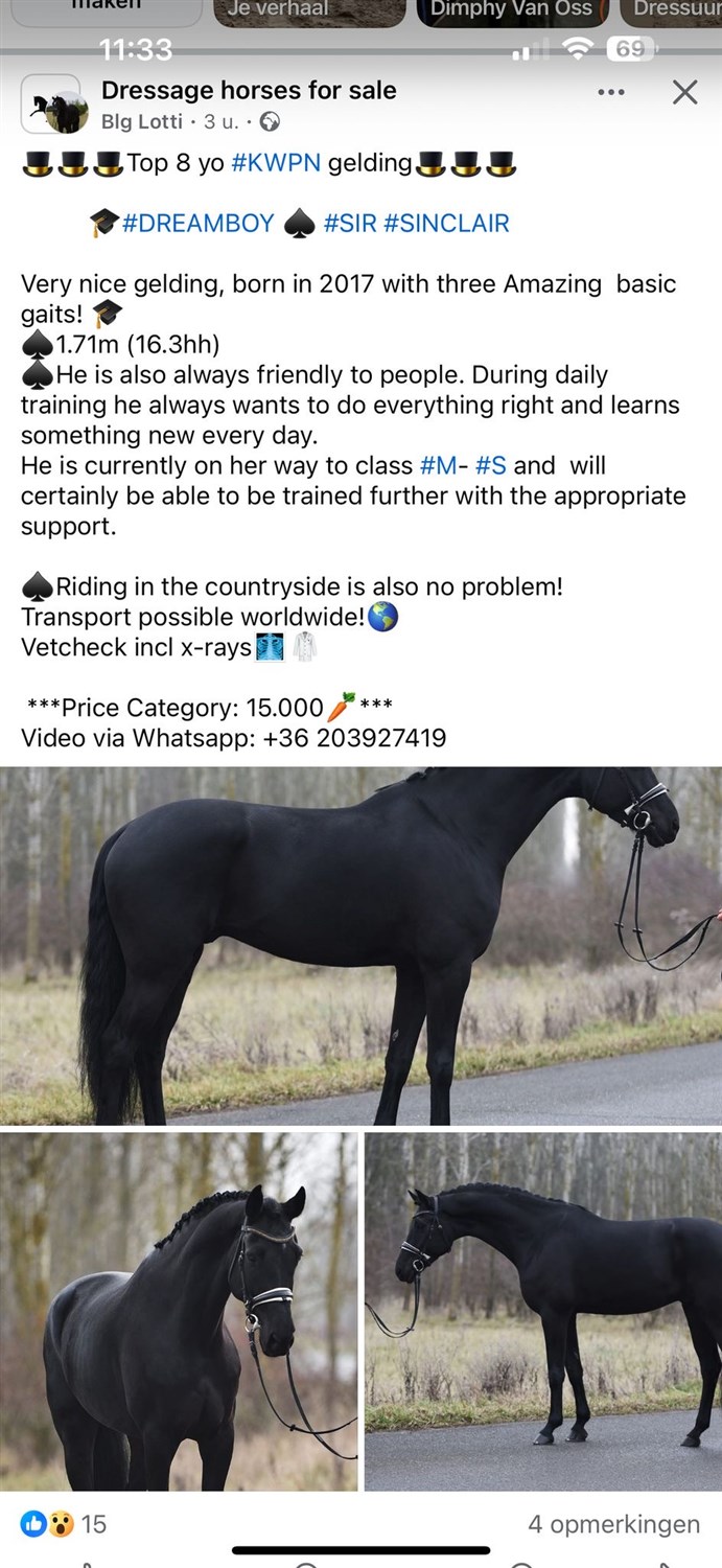 Madox wordt verkocht. Mijn vriendin wist ervan, maar stond machteloos. Omdat hij niet op haar naam stond, had ze geen zeggenschap over de beslissing. Het enige wat ze kon doen, was hopen dat de nieuwe eigenaren hun beloftes zouden waarmaken. Die beloofden een goed leven voor hem, als weidegenoot en niet als rijpaard precies wat hij nodig had. Ze ontvingen zelfs foto’s van de zogenaamd nieuwe locatie, alles leek in orde…