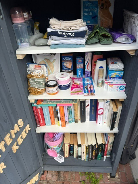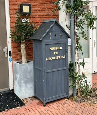 In februari 2025 ben ik daarom gestart met een minibieb en weggeefkastje, gevuld met: