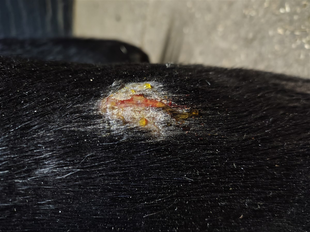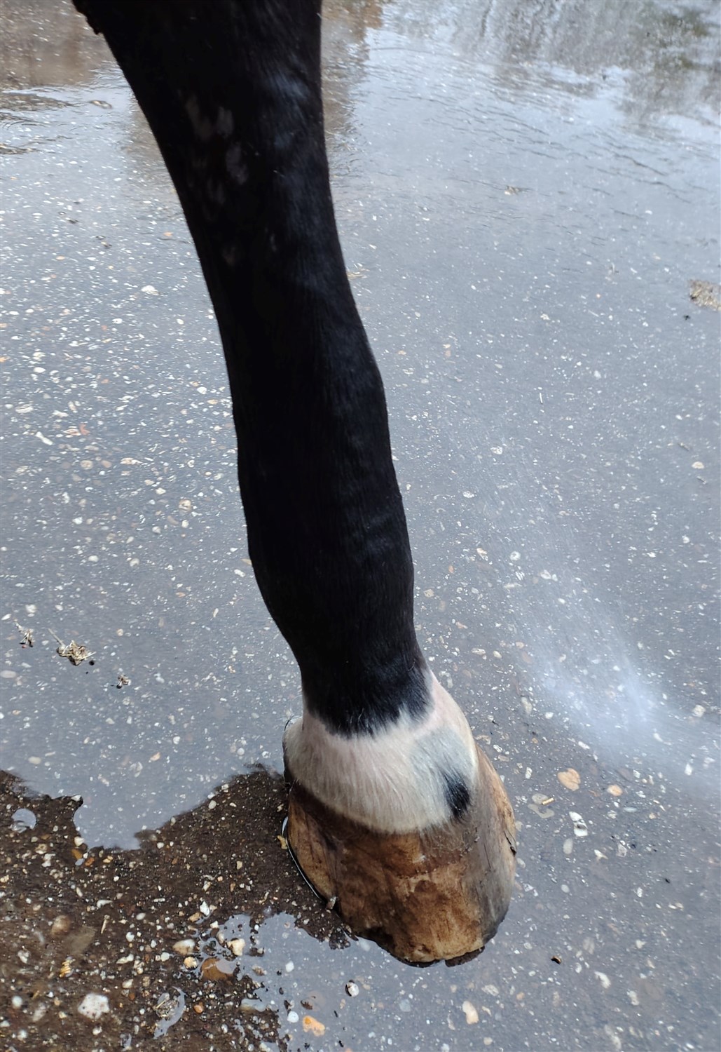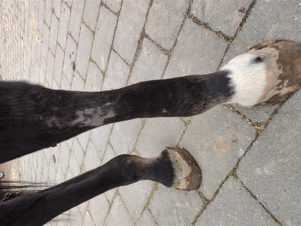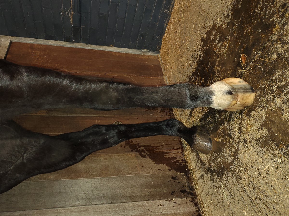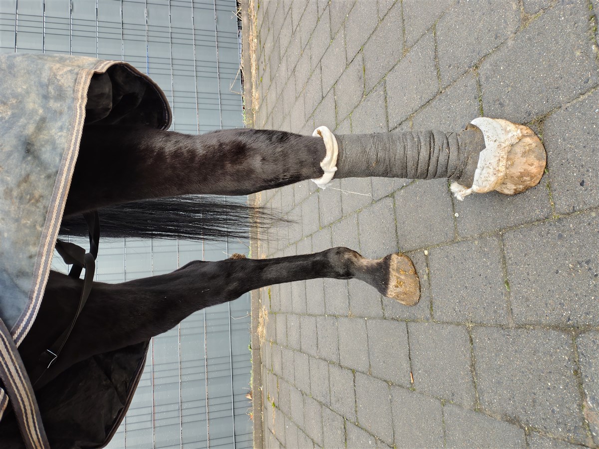 In de avond met naar binnen halen en voeren was er helemaal niks aan de hand. De volgende ochtend trof ik haar aan met een enorm dik been — het bleek om acute Einschuss te gaan. Ik heb meteen de dierenarts gebeld en vanaf dat moment zijn we in een intens traject beland met behandelingen, controles, veel medicatie, 3x per dag stappen, koelen, stalbandages, noem maar op.