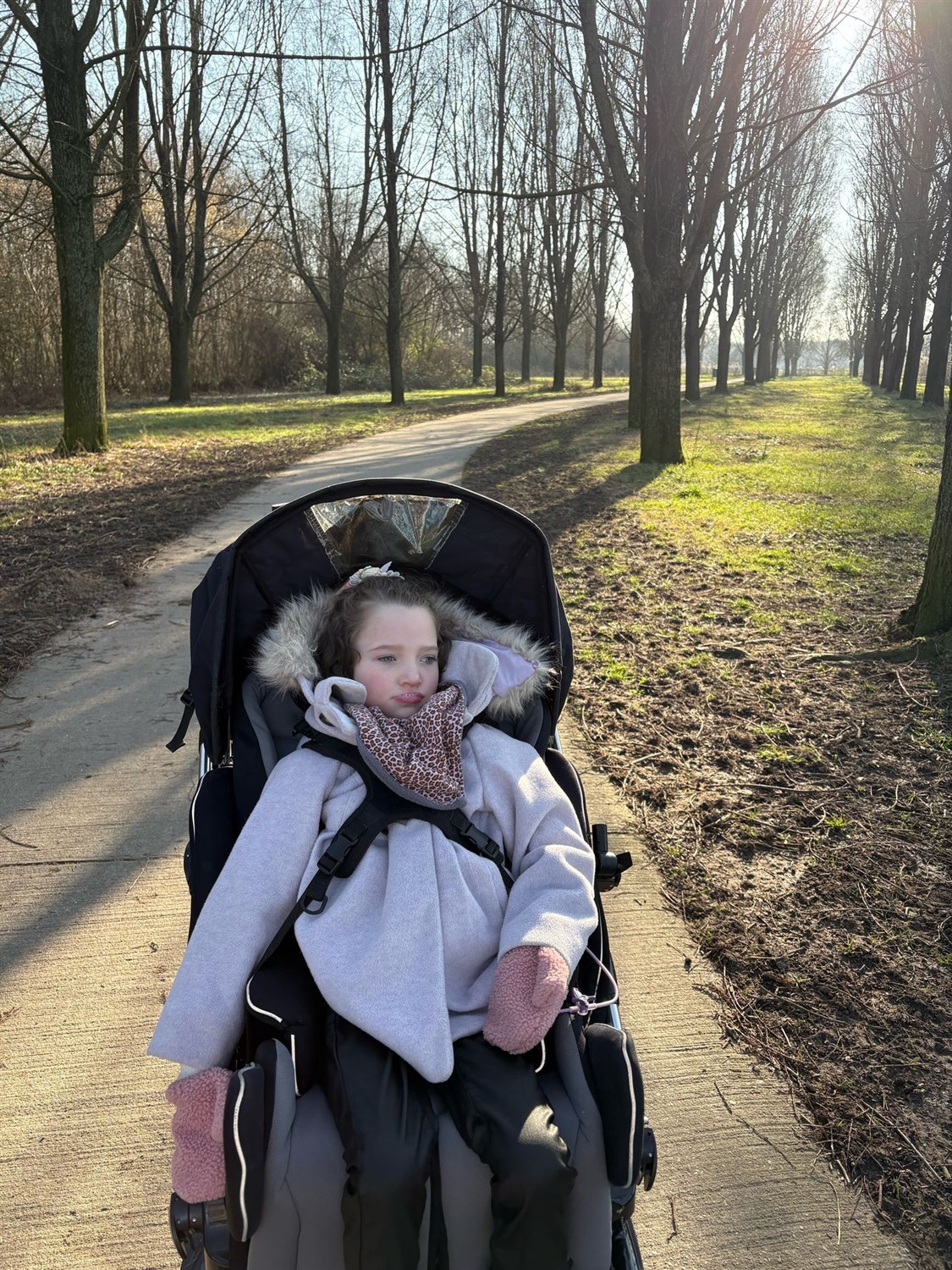 Vervoer met een normale auto is erg omslachtig aan het worden. Het tillen in en uit de auto is fysiek zwaar voor haarzelf en ouders, zeker nu ze groeit en haar hulpmiddelen toenemen. Haar rolstoel past er nauwelijks in, en alles moet in losse onderdelen mee. Hierdoor worden simpele uitstapjes een enorme logistieke uitdaging – iets wat voor andere gezinnen zo vanzelfsprekend is.