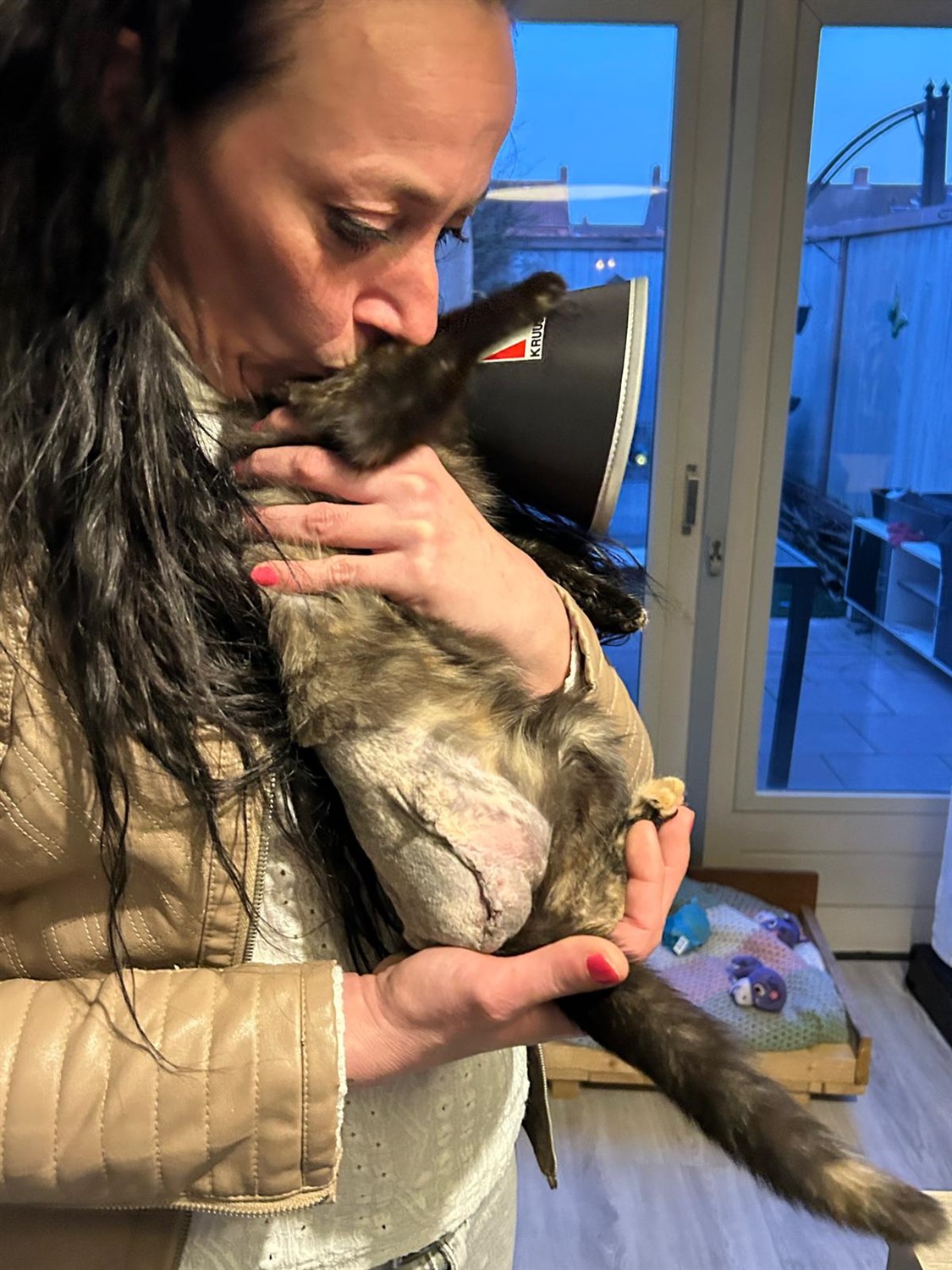 Gisteren op een mooie zonnige dag had ik de kitten even buiten gelaten.. helaas is ze de schutting over geklommen en is ze gewond thuis gekomen