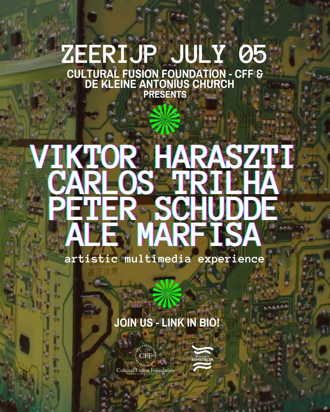 Met optredens van Latin Grammy-winnaar Carlos Trilha, muzikant en geluidsinnovator Viktor Haraszti, beeldhouwer Peter Schuddethis, en ontwerper Ale Marfissa, vindt dit unieke evenement plaats op 5 juli 2025 in De Kleine Antonius in Zeerijp.